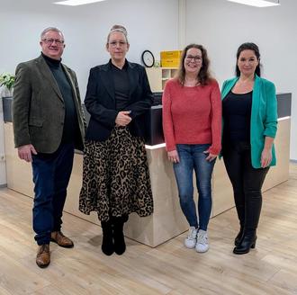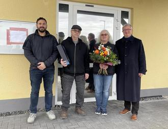 Bürgermeister Gerd Rocker bedankt sich bei dem Ehepaar Neumann als Eigentümer des Interims Verwaltungsgebäudes für die Gastfreundschaft
