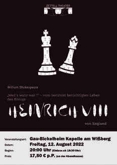 Das Liebesleben von Heinrich VIII. bietet mehr als genug Stoff für das ganz große Drama - nur kommt leider nichts davon bei Shakespeare vor. Bei ihm wird keine Gattin geköpft, nur Bischöfe und Adlige werden aus dem Weg geräumt. Geliebt, verlobt, verheiratet, gekrönt und getauft wird hinter der Bühne - auf der Bühne sehen wir dem König beim Hofhalten zu. Dreihundert Jahre war das beste Unterhaltung, seit bald zweihundert Jahren interessiert es niemanden mehr.