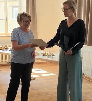 Ortsbürgermeisterin Frau Annerose Kinder nahm den Förderbescheid entgegen und bedankte sich für die große Unterstützung des Landes, was letztendlich eine Wertschätzung für die Gemeinde Siefersheim, deren Bürgerinnen und Bürger zum Ausdruck bringt. Bei einem Rundgang durch das Dorfgemeinschaftshaus zeigte sich die Staatssekretärin begeistert von der Wertigkeit der durchgeführten Sanierungsarbeiten. Die anschließende Bilderschau gab einen Einblick in die geleisteten Arbeiten in den Bauabschnitten 1-3, die ebenfalls vom Land mit 65% der förderfähigen Summe bezuschusst wurden.