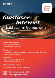 Die Vermarktung für den Ausbau der Glasfaserleitungen, die bis ins Gebäude gelegt werden, läuft in Gumbsheim vom 1. August bis 31. Oktober 2024. Rund 310 Privathaushalte und Unternehmen können sich in dieser Zeit einen kostenlosen Glasfaseranschluss sichern (sonst rund 1.500 €). Dafür ist es in Gumbsheim erforderlich, ein E.ON Highspeed Produkt zu buchen und somit den Anschluss zu aktivieren, um nach Inbetriebnahme mit Highspeed im Internet surfen zu können. Während der Vermarktungsphase sparen Interessierte die Anschlussaktivierung in Höhe von rund 400 € und profitieren damit von einer Gesamtersparnis in Höhe von rund 1.900 €.