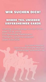 Wenn du Interesse hast, ein Teil der Gruppe zu werden, melde dich gerne über tanz@spvgg-siefersheim.de oder per Instagram.