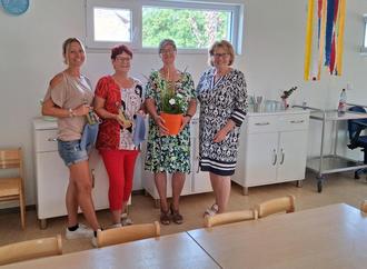 Für den Träger bedankte sich Frau Annerose Kinder mit einem kleinen Blumengruß bei Frau Schenk für ihr jahrelanges Engagement und wünschte ihr für den verdienten Ruhestand nur das Beste. Gleichzeitig begrüßte sie die Nachfolgerin und wünschte dem neuen Hauswirtschaftsteam eine „köstlich“ gute Zusammenarbeit!