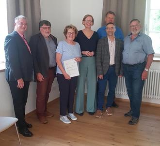 Im Rahmen einer kleinen Feierstunde im Dorfgemeinschaftshaus in Siefersheim übergab die Staatssekretärin des Ministeriums des Innern und für Sport, Frau Simone Schneider, zwei Förderbescheide an die Ortsbürgermeisterinnen von Siefersheim und Wendelsheim. Siefersheim erhält 150.00,00 Euro für die Gestaltung des Außengeländes um das Dorfgemeinschaftshaus. Die Ortsgemeinde Wendelsheim erhält 160.000,00 Euro für „Mehr Grün im Ort“. Hier sollen verschiedene öffentliche Anlagen, wie beispielsweise der Ortseingang in der Bahnhofstraße oder auch der Spielplatz in der Schloßgasse mit Bäumen und Sträuchern und Grünanlagen gestaltet werden. Die Ortsbürgermeisterinnen Annerose Kinder und Christine Knuth bedankten sich für diese Zuwendungen des Landes Rheinland-Pfalz und freuten sich, dass die geplanten Maßnahmen nunmehr umgesetzt werden können. Bürgermeister Gerd Rocker übermittelte die Grüße und Glückwünsche der Verbandsgemeinde und dankte den beiden Gemeinden für ihr Engagement.
