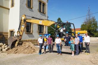 nach vierjähriger Planungsphase und zahlreichen Abstimmungsgesprächen mit den Fachbehörden und Institutionen, konnte nunmehr der erste Spatenstich zum vorgesehenen Erweiterungsbau am Verwaltungsgebäude in der Bahnhofstraße 10 in Wöllstein erfolgen. Unter Beteiligung der Vertreter der Fraktionen, des Verbandsgemeinderates, der Verwaltung, des bauleitenden Architekten und der bauausführenden Firma Gerharz, erfolgte dieser symbolische Akt. Die Kosten des Gesamtprojektes, das heißt die Kernsanierung des Bestandsgebäudes und des Erweiterungsbaus sowie sämtlicher Nebenkosten was Honorarleistungen anbelangt, als auch Mietkosten in der Ausweichverwaltung in Gau-Bickelheim, betragen rund 6.900.000,00 Euro. Von Seiten des Landes Rheinland-Pfalz wurde im Rahmen des sogenannten Investitionsstockes eine Zuwendung in Höhe von 3.750.000,00 Euro zugesichert. Der Erweiterungsbau ist zwingend notwendig, um den Erfordernissen an eine moderne Verwaltung zu genügen und insbesondere den gestiegenen Büroraumbedarf zu decken. Gebaut wird was einer Verwaltung dieser Größenklasse zusteht und auch von Seiten des Staates gefördert wird. Da das Bestandsgebäude unter Denkmalschutz steht, müssen die Vorgaben der Denkmalbehörde zwingend beachtet werden. Der dadurch bedingte Mehraufwand wird allerdings von Seiten des Denkmalschutzes nicht gefördert. Auch hat der Rechnungshof des Landes Rheinland-Pfalz sich maßgeblich in die Maßnahme eingebracht, insbesondere vor dem Hintergrund auch im Bestandsgebäude den Klimaschutzzielen des Landes Rheinland-Pfalz zu entsprechen. Die Initiative des Rechnungshofes wird auch von Seiten des Verbandsgemeinderates ausdrücklich begrüßt und die formulierten Vorgaben wurden alle im Bereich der Planung, als auch Kostenbetrachtung, umgesetzt. Gerade die jetzige Entwicklung im Bereich der Energie zeigt wie wichtig es ist Energie einzusparen und vor allem auch alternative Formen der Gebäudeheizung zu nutzen.