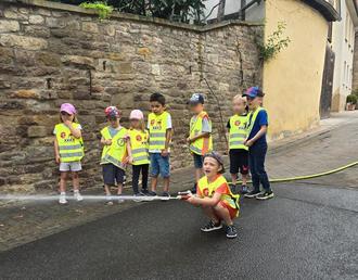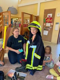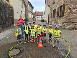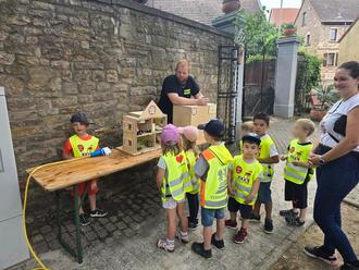 Die Kinder der Kita Sonnenschein freuen sich jedes Jahr aufs Neue, wenn es wieder heißt Brandschutzerziehung „Die Feuerwehr kommt“. Frau und Herr Müller von der Feuerwehr Wonsheim sind am frühen Dienstagmorgen, dem 28.05.2024, mit dem Einsatzleitwagen (ELW) und dem Löschgruppenfahrzeug (LF) auf das Kita-Gelände gefahren. Anschließend wurde jede Gruppe altersgerecht über die Brandsicherheitshinweise aufgeklärt. Jeder, der wollte, durfte die Einsatzjacke, die ein Feuerwehrmitglied trägt, anfassen, um mal zu sehen, dass das ganz schön schwer ist. Auch beim Tragen eines Atemschutzgerätes wurde gezeigt, dass man keine Angst davor haben muss, auch wenn es etwas komisch aussieht oder klingt. Dabei war sehr wichtig, dass die Kinder sich in Brandsituationen nicht verstecken, sondern etwas sensibilisiert werden. Anhand von Fotos konnte anschaulicher gezeigt werden, was die Aufgaben der Feuerwehr sind. Mit diesem großen Wissen besuchten drei der fünf Kita-Gruppen am Mittwoch, dem 10.07.2024, die Freiwillige Feuerwehr Wonsheim. Es wurde die Einsatzkleidung begutachtet, Geräte, die auf den Autos sind, und deren Anwendung erklärt. Das Highlight war jedoch ein brennendes Haus, das mit Hilfe eines D-Strahlrohrs gelöscht werden musste. Die Vorschulkinder durften zusätzlich mit Hilfe von Frau Müller ein Streichholz anzünden und haben erklärt bekommen, was so ein Feuer braucht, um zu brennen, und was für Gefahren bei Unachtsamkeit entstehen können. Ganz besonders toll fand die Kita das Rauchhaus. Durch den ansteigenden Rauch sahen sie, wie schnell sich dieser im Haus verbreitet und wie wichtig es ist, Rauchmelder in jedem Zimmer zu haben, die die Gefahr den Menschen durch Akustik signalisieren. Die Kinder bedankten sich bei Frau und Herrn Müller sowie bei Frau Stumpf, die sich die Zeit für die Kita genommen haben. Belohnt wurden sie mit selbstgemalten Bildern, die in der Feuerwehr nun begutachtet werden können.