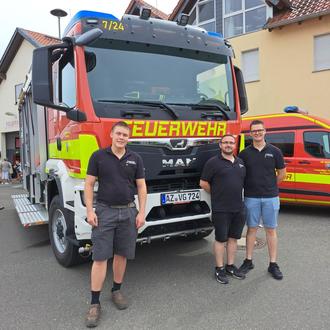 Wie gewohnt, war der Zuspruch aus der Bevölkerung groß und die Sitzgelegenheiten im aufgebauten Zelt und darüber hinaus waren alle besetzt. Die Feuerwehrkameraden waren bestens gerüstet und hielten ein breites Angebot an Speisen und Getränken für ihre Gäste vor. Ergänzt wurde das Programm durch eine aufgebaute Hüpfburg für die kleinsten Besucherinnen und Besucher und eine Ausstellung von Feuerwehrfahrzeugen. Auch waren die Kameradinnen und Kameraden der Freiwilligen Feuerwehr, Einheit Wöllstein, mit dem neuen TLF 4000 vertreten. Wehrführer Roman Schröder begrüßte die Gäste und zeigte sich über den guten Besuch sehr erfreut.