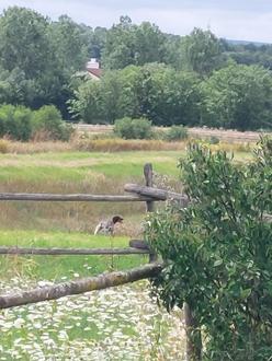Was man nicht sieht, aber von der Zeugin, die das Bild gemacht hat aus der Entfernung mit angesehen werden musste ist, dass dieser Hund gerade ein Reh den halben Wißberg herunter gehetzt hat und es dann im Versickerungsbecken vis a vis vom Sportplatz gestellt und gerissen hat. Das untenstehende Bild fällt dann definitiv nicht mehr unter „heile Welt“.