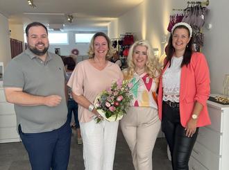 Herzliche Glückwünsche zur Neueröffnung von „Anziehend by Sabrina“ konnte Ortsbürgermeister Johannes Brüchert im Namen der Ortsgemeinde Wöllstein überbringen. Das Dessousgeschäft in der Ernst-Ludwig-Straße öffnete am Samstag erstmals die Türen und bereits viele interessierte Gäste und Kunden konnten sich bei einem Glas Sekt im Geschäft umschauen und die Eröffnungsangebote nutzen. Die Ortsgemeinde freut sich sehr, dass im Eingang zur Ernst-Ludwig-Straße wieder ein Geschäft eröffnet hat und so das vielfältige Einkaufsangebot in Wöllstein bereichert.