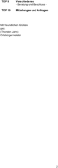 | TOP 1 | Einwohnerfragestunde gemäß § 16a der Gemeindeordnung |