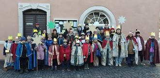 Organisiert wurde das Ganze wieder von Melanie Almeroth vom Pfarrbüro, dieses Jahr unterstützt von Jutta und Laura Vollmer. Dabei waren auch einige begleitende Eltern und Jugendlichen, denn trotz allem Eifer und großer Textsicherheit beim Singen – der Türsturz war doch für die meisten der kleinen Majestäten noch nicht erreichbar.