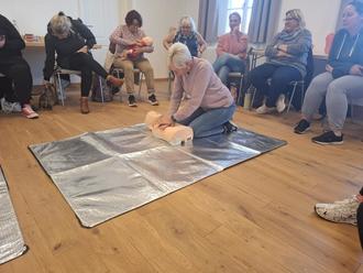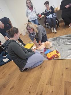 Lungen-Wiederbelebung über. Die Mitarbeiterinnen haben ihr Wissen wieder auffrischen können, wo, wie und in welcher Schnelligkeit die verschieden Patienten wieder zur Atmung animiert werden können. Erneut wurde festgestellt, dass vieles wieder neu gelernt werden musste und man die Anstrengung der Wiederbelebung unterschätzte. Nun sind alle wieder auf dem neuesten Stand und bestens belehrt. Vielen Dank an Herrn Rohschürrmann für den informativen Arbeitstag.