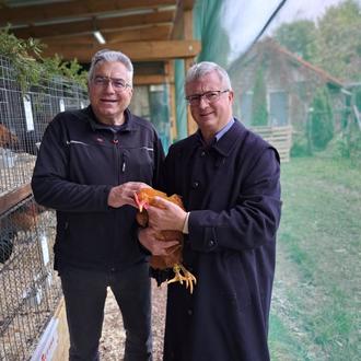 Die traditionelle Lokalschau des Rassegeflügelzuchtvereins Wöllstein – Siefersheim fand am letzten Wochenende des Oktobers auf der Zuchtanlage in Siefersheim statt. Hier präsentierten die Geflügelzüchter eindrucksvoll ihre Ergebnisse des diesjährigen Zuchtjahres. Ausgestellt waren Hühner der verschiedensten Rassen und Farbenschläge. Die Geflügelzüchter leisten mit ihrer Arbeit einen wertvollen Beitrag zum Erhalt der Vielfalt der Rassen. Gerne besuchte auch Bürgermeister Gerd Rocker die Veranstaltung und überreichte dem Vorsitzenden des Vereines Herrn Norbert Seibert ein Geldpräsent zur finanziellen Unterstützung der Vereinsarbeit. In der Verbandsgemeinde insgesamt gibt es zwar zahlreiche Hühnerhalter, aber immer weniger welche sich für die Rassegeflügelzucht interessieren und diese betreiben. Vorsitzender Seibert würde sich über weitere Mitglieder freuen, die sich für dieses Hobby begeistern. Mit auf dem Bild ist in diesem Jahr eine Henne der Rasse New Hampshire.