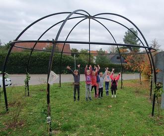 Einen Rückzugsort auf dem Pausenhof wünschten sich die Kinder. Möglichst naturnah soll dieser sein, wünschte sich das Kollegium. Möglichst kostengünstig, aber dennoch langlebig wünschten sich alle. Geht nicht? An der Grundschule Am Appelbach geht das, dank des außergewöhnlich engagierten Schulelternbeirats. Der handwerklich begabte Elterntrupp nahm das einfach selbst in die Hand. Herr Voss stellte das Gerüst für einen naturnahen Pavillon in Eigenleistung her und alle anderen Eltern packten beim Aufbau mit an. Dann wurde noch bepflanzt und im nächsten Frühling dürfen sich dann alle Kinder über ein bewachsenen Rückzugsort freuen. Wir sagen Danke an den tollen SEB sowie an unseren Förderverein, der die Materielkosten übernommen hat.