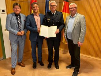 Der bisherige Brand- und Katastrophenschutzinspekteur des Landkreises Alzey-Worms, Herr Michael Matthes, wurde für weitere 10 Jahre im Amt durch die Wehrleiter der Stadt Alzey und der 6 Verbandsgemeinden bestätigt. Im Rahmen einer kleinen Feierstunde, bei der auch langjährige Kreistagsmitglieder geehrt wurden, überreichte Landrat Heiko Sippel die entsprechende Ernennungsurkunde an Herrn Matthes. Auch Bürgermeister Gerd Rocker gratulierte Herrn Matthes zu seiner Wiederwahl, bedankte sich für die bisherige gute, vertrauensvolle und konstruktive Zusammenarbeit im Bereich des Brand- und Katastrophenschutzes und wünschte Herrn Matthes für seine weitere Amtszeit alles Gute und viel Erfolg.