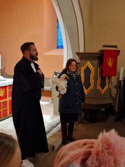 Herr Pfarrer Mankel und Küsterin Frau Sandra Schmidt von der katholischen Kirche begrüßten die Gäste mit der Geschichte von St. Martin.