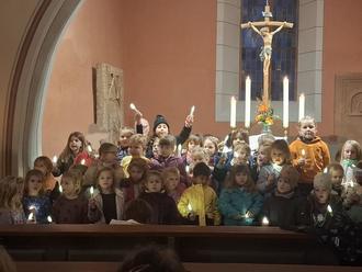 Mit Kerzen in der Hand sangen sie das Lied „Lichterkinder“, was dem ein oder anderen bestimmt feuchte Augen bereitete.