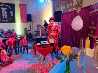 Bis auf den letzten Platz gefüllt war die Scheune am Sonntag zum Kerbeessen, das nahtlos ins Kerbecafé der evangelischen Kirche überging, während sich die Kinder in der Scheune um den Zauberer „Tricks“ versammelt hatten und begeistert seine Zauberkünste mit Applaus belohnten.