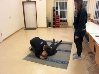 An einer anderen Station stand die praktische Erste-Hilfe im Mittelpunkt. Aufgabe war es, einen Verunglückten durch die stabile Seitenlage zu versorgen.