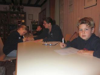 Knifflige Theoriefragen hatten Emilie, Alex und Franz – angeleitet von Betreuerin Claudia – zu beantworten.