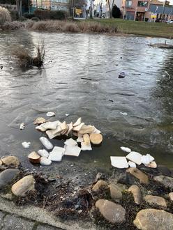 Diese „Fütterungen“ muss der Bauhof der Ortsgemeinde Wöllstein leider regelmäßig entsorgen. Halten Sie sich deshalb bitte an die Hinweise „Enten füttern verboten“ und sprechen Sie Menschen, die Sie beim Füttern von Enten sehen darauf an und klären Sie freundlich darüber auf, dass dies den Tieren und der Umwelt eher schadet.