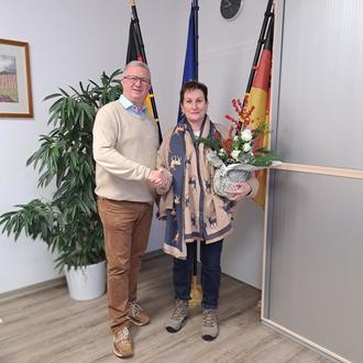 Anfang Dezember konnte die langjährige Mitarbeiterin der Verwaltung, Frau Klementine Baumgärtner, ihren 60. Geburtstag feiern. Bürgermeister Gerd Rocker beglückwünschte Frau Baumgärtner zu diesem runden Geburtstag und dankte ihr für ihr Engagement und Einsatz in der Verwaltung im Bereich des Einwohnermeldeamtes. Für die Zukunft wünschte er ihr alles erdenklich Gute, vor allem Gesundheit, Zufriedenheit und freute sich auf eine weiterhin gute und gedeihliche Zusammenarbeit.