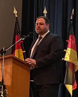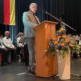 Als erster Redner sprach Landrat Heiko Sippel, der dem bisherigen Bürgermeister Gerd Rocker für die gute und verlässliche Zusammenarbeit dankte und Johannes Brüchert seine Glückwünsche aussprach. In seiner Rede betonte der Landrat, dass die Kommunalpolitik das Herzstück der demokratischen Ordnung bilde. Gerade in den derzeit herausfordernden Zeiten sei es wichtiger denn je, den Dialog zu fördern und Menschen mit Respekt miteinander ins Gespräch zu bringen.