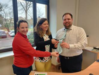 Am Altweiberdonnerstag übernahmen traditionell die Mitarbeiterinnen der Verwaltung das Regiment im VG-Rathaus. Mit viel guter Laune und närrischem Elan stürmten sie das Büro von Bürgermeister Brüchert – und wie es sich gehört, fiel seine Krawatte kurzerhand der Schere zum Opfer. Bei Secco und leckeren Kreppeln wurde anschließend gemeinsam auf die Fastnacht angestoßen und der Start in die närrischen Tage gebührend gefeiert.