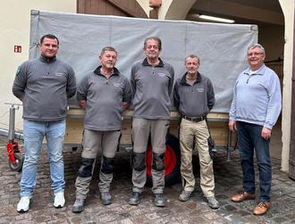 Das Bild zeigt ihn inmitten seiner Kollegen vom Bauhof der Ortsgemeinde und Ortsbürgermeister Fehlinger vor seinem letzten Projekt. Zusammen mit F. Bönnighaus war er maßgeblich an der Restaurierung des alten „Plugskarch“ des Bauhofs beteiligt.