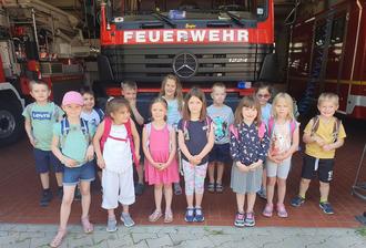 Die Vorschulkinder machten am Donnerstag 01.06.23 einen Ausflug zur Freiwilligen Feuerwehr nach Osthofen. Wir haben sehr viel über die Arbeit der frewiligen Feuerwehr gehört und durften auch die vielen Fahrzeuge und Geräte sehen. Die Beiden Feuerwehrmänner Uwe Fischer und Christian Heimer erklärten den Kindern sehr anschaulich, wofür die einzelnen Ausrüstungen gebraucht werden. Die Kinder haben noch den ganzen Tag von den Erlebnissen bei der Feuerwehr in der Kita berichtet. Ganz herzlich möchte sich das Vorschulteam noch einmal bei den beiden Feuerwehrmännern, Herrn Fischer und Herrn Heimer für die kindgerechte und sehr interessante Führung bedanken.
