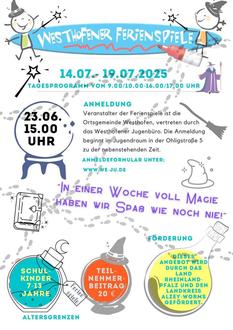 Druckt das Anmeldeformular auf unserer Website www.we-ju.de aus und bringt es ausgefüllt mit dem Teilnehmerbeitrag am 23. Juni ab 15.00 Uhr (oder zu allen weiteren Öffnungszeiten) ins Jugendbüro und sichert euch so eure Plätze- wir freuen uns auf euch!