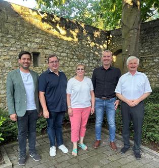 Bürgermeister Walter Wagner und Ortsbürgermeister Joachim Mayer mit den erneut gewählten Beigeordneten Sabine Flörsch, Sascha Krause und Stefan Müller (von rechts nach links)