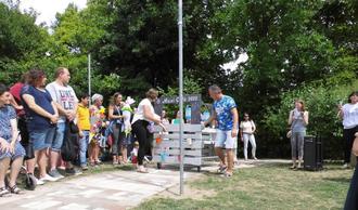 Das Sommerfest fand am 09. Juli 2022 statt. Um 14.30 Uhr öffneten sich die Tore und unser Fest konnte beginnen. Im Steinkreis wurden Alle von Frau Zanolla begrüßt und wir sangen gemeinsam „unser“ Lied „Wir sind die Kinder der Arche Noah“. Alle Erzieherinnen wurden von einigen Maxi-Kindern namentlich vorgestellt. Dann hatten alle Vorschulkinder ihren großen Auftritt. Jedes Maxi-Kind wurde aufgerufen, bekam eine Medaille und die selbstgebastelte Schultüte überreicht. Nach ganz herzlichen Dankesworten durch die Maxi-Eltern kam eine megatolle Überraschung um die Ecke gerollt - eine selbstgebaute Matschküche für unsere Kinder! Ein ganz herzliches Dankeschön hierfür! Das Programm beendeten wir mit dem Lied „Wir feiern heut‘ ein Fest“. Nun waren Buffet und die Aktionsstände eröffnet. In unserem Bistro wurde ein Snack-Buffet aufgebaut mit ganz vielen leckeren Kleinigkeiten. An unserer Schminkecke herrschte sofort großer Andrang - danach war es in Gesichtern und Armen kunterbunt und es glitzerte. Kräftiges Gemurmel und regen Austausch gab es bei Elterninterviews und den dazu ausgeteilten Fragen, wie z.B. „welche Familie hat mehr als ein Haustier“ oder „Finde eine Familie, die heute mit dem Fahrrad gekommen ist und welche Farbe hat das Fahrrad der Mama“? Auch für die Künstler gab es eine Aufgabe - einen „Kunstwalk“ - auf Bettlaken wurden bunte Hände und Füße von den Gästen abgedruckt. Unsere Turnmatte am Tor, - jedes Kind „flog“ einzeln aus der Kindergartenzeit heraus.Vielen Dank für die tatkräftige Unterstützung und rege Teilnahme an unserem wirklich sehr gelungenen Fest. Es war schön, in diesem Kreis mal wieder gemeinsam feiern zu können und sich auszutauschen, neue Kontakte zu knüpfen und schon bestehende zu intensivieren.