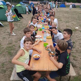Freitags stand neben Spielen auch das Kochen des Abendessens über der Feuerstelle auf dem Programm. Vor der Nachtwanderung durfte knuspriges Stockbrot am Lagerfeuer geröstet und Marshmallows gegrillt werden. Übernachtet wurde in den eigenen Zelten auf dem Bolzplatz. Nach dem gemeinsamen Frühstück wurde an unsere müden aber glücklichen Ferienspielkinder die Urkunden durch ihre Betreuer verliehen, bevor sie von ihren Eltern abgeholt wurden.