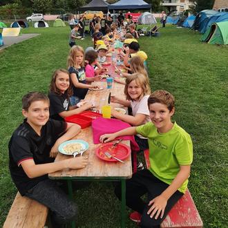 Rechtzeitig zum Zeltaufbau am Freitag ließ der Regen nach und die Ferienspielkinder konnten sich nachmittags auf eine Schatzsuche begeben, an deren Ende der freundliche Waldgeist Urkunden verteilte und alle mit Saatkugeln und Keksen versorgte. Nach dem gemeinsamen Abendessen auf dem Bolzplatz konnten bis weit in die Nacht verschiedene Stockbrote am Lagerfeuer geröstet, Schokobananen und Marshmallows gegrillt werden, bevor gegen 0.30 Uhr tatsächlich so etwas wie Zeltruhe einkehrte. Nach dem gemeinsamen Frühstück in den einzelnen Gruppen wurden unsere müden aber glücklichen Ferienspielkinder von ihren Eltern abgeholt.