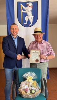 Wenn man haupt- und ehrenamtliche Tätigkeiten zusammenzählt, kommt Hans-Jürgen Sackreuther auf insgesamt 37 Dienstjahre für die Ortsgemeinde Bechtheim. Am 18.08.2025 wurde er durch Tobias Perlick feierlich aus dem Gemeindedienst verabschiedet. Beratend steht er jedoch mit seiner Erfahrung weiterhin, auch außer Dienst, zur Verfügung.