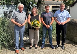 Bild v.l.n.r.: Bürgermeister Walter Wagner, Jubilarin Sabine Stumpf, Personalratsvorsitzender Jürgen Schmitt, Büroleiter Markus Knorpp