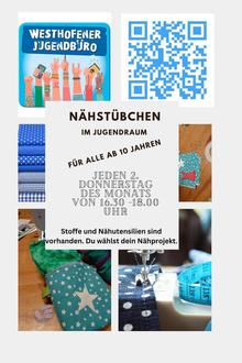 Das Nähstübchen ist ein fester Bestandteil des Programmes im Jugendraum und findet jeden 2. Donnerstag des Monats statt, also wieder am 12. September. Neue Projekte, Individualisierung oder auch Reparatur- alles was ihr wollt ist möglich! Es sind keine Vorkenntnisse im Umgang mit der Nähmaschine nötig, viele Stoffe und Materialien sind vorhanden. Wir freuen uns auf euch!
