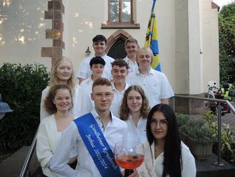 | - | das Kerwepaar Emily und Joshua mit der Kerwejugend |