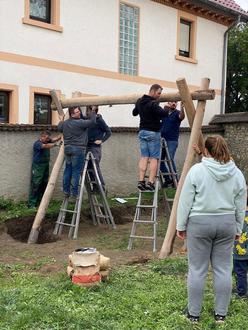 In verschiedenen Gemeinschaftsaktionen wurde in dieser Woche der Aufbau einer neuen Schaukel im Pfarrhof abgeschlossen.