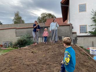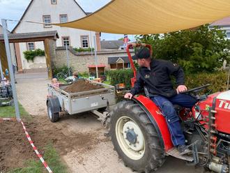Die engagierte Männergruppe aus Gundheim, begann bereits in den Sommerferien mit den umfangreichen Vorbereitungen im Pfarrhof. Ein Zaun wurde entfernt, um Platz für die neue Schaukel zu schaffen. Ein Teil der Zaunelemente fand im Kita-Hof eine neue Verwendung und wurde dort eingebaut. Ein großes Loch wurde ausgehoben, um auch für den passenden Fallschutz zu sorgen. Die ausgehobene Erde wurde in den besonders beliebten Spielecken verteilt.