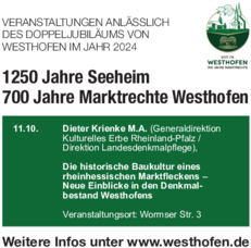 Westhofen hat das einzigartige historische Ortsbild eines typisch rheinhessischen Markfleckens bewahrt. Bereits aufgrund des hessischen Denkmalschutzgesetzes von 1902 wurden hier bemerkenswerte Bauten der frühen Neuzeit in den Blick genommen. Beeindruckend ist die Liste seiner Alleinstellungsmerkmale: Seebachquelle und Seebachkanal, der weitläufige Marktplatz samt mittelalterlichen Kirchen und Umbauung, das kaum erforschte „Kellerlabyrinth“, Höfe und Häuser von der Renaissance bis zur Gründerzeit, die vielsäuligen Gewölbeställe, die originellen Weinbergshäuser. Der Vortrag bietet einen Überblick über den gleichermaßen umfangreichen wie qualitätvollen Denkmalbestand, der sich großteils in dem einst befestigten Ortskern konzentriert. Vor dem Hintergrund der Ortsbauentwicklung werden seltene Einblicke in die Binnenstrukturen der Gebäude gewährt. Darüber hinaus wird auch eine Einordnung der Baugeschichte Westhofens in den hauslandschaftlichen Kontext Rheinhessens vorgenommen.