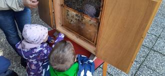 In Kleingruppen konnten die Kinder an der Bienenstation eine Menge Dinge erleben, anfassen, betrachten und natürlich auch den leckeren Honig kosten.