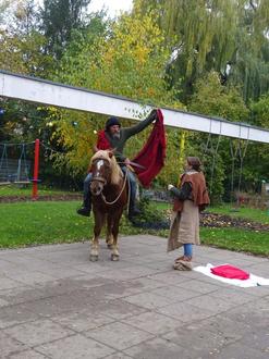 Im Anschluss waren alle in den Garten der Kita eingeladen. Hier wurde von einigen Vorschulkindern das Sankt Martinsstück vorgeführt bevor der Abend bei leckerem Kinderpunsch, Würstchen, Brezeln und Weckmännern gemütlich ausklang.