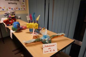 Letztendlich entstanden durch Teamgeist, Kreativität, Feinmotorik und Durchhaltevermögen erstaunliche und fabelhafte Wesen, die es nach den Herbstferien in einer Ausstellung in der Aula der Schule zu sehen gab.