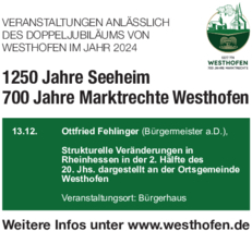 Der Vortrag berichtet aus dieser Zeit, die sicherlich noch viele Westhofenerinnen und Westhofener aus eigener Erfahrung kennen. Er soll, hoffentlich mit vielen Bildern aus dieser Zeit, ein bescheidenes Bollwerk gegen das Vergessen sein und die eine oder andere Kindheitserinnerung zurückholen."
