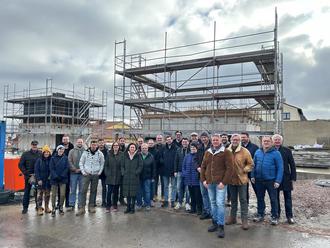 Anschließend begaben sich alle Teilnehmer gemeinsam zur Baustelle, um sich vor Ort ein Bild vom aktuellen Stand der Arbeiten zu machen.