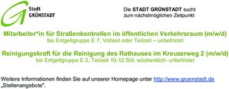 Die STADT GRÜNSTADT sucht zum nächstmöglichen Zeitpunkt