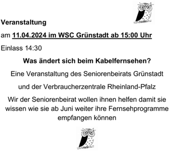 Wir der Seniorenbeirat wollen ihnen helfen damit sie wissen wie sie ab Juni weiter ihre Fernsehprogramme empfangen können