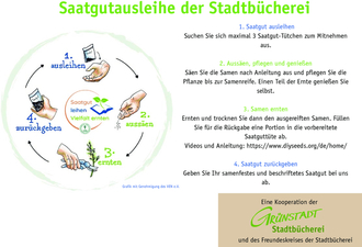 Zu den Öffnungszeiten der Bücherei kann vom 13.04. bis 15.06.2024 Saatgut ausgeliehen werden. Das neugewonnene Saatgut kann wiederum bis zum Herbst abgegeben werden, um so auch im Folgejahr den Bestand der Saatgutbibliothek stetig aufzubauen.