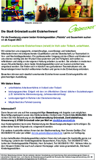 Die Stadt Grünstadt sucht Erzieher/innen!